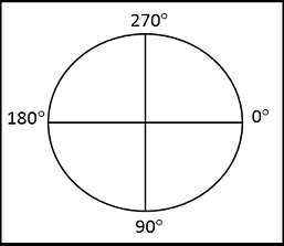 On a horizontal axis, left is 180°, right is 0°.